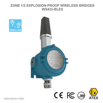 WS433EX-BL is a range of Sub-GHz wireless bridges to replace the RS485 cable or network. It has Ex d approval for installation in Zone 1, Zone 2 or Safe Zone. LOS Distance is up to 500m at baud rate 38400 with standard installation. This wireless technology will save time, labor cost & cable cost as well.