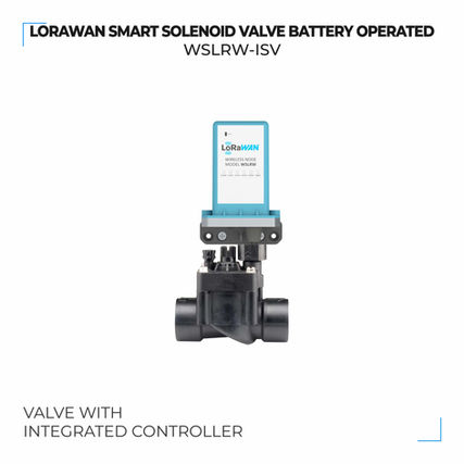 The WSLRW-ISV is an integrated LoRaWAN Latching Solenoid Valve Controller with a built-in latching solenoid valve body, available in sizes ranging from 3/4 inch to 4 inches, specifically designed for irrigation systems and water supply or distribution networks. This all-in-one solution eliminates the need for external valve installation, making deployment faster and more efficient. Engineered with ultra-low power consumption, the device can operate for up to 5 years on battery power, depending on configuration. The WSLRW-ISV transmits data over distances of several kilometers to any brand of LoRaWAN gateway available on the market, ensuring reliable long-range communication in various environments. Ideal for smart irrigation systems in gardens, farms, and hydroponic applications, the WSLRW-ISV is also well-suited for use in building water supply lines, facility management, and FCU control in HVAC systems. Its robust design, seamless wireless integration, and long-lasting battery life make it a high-performance, low-maintenance solution for remote water flow control. By combining valve control and communication in a single unit, the WSLRW-ISV significantly reduces installation complexity and enhances automation in water resource management.